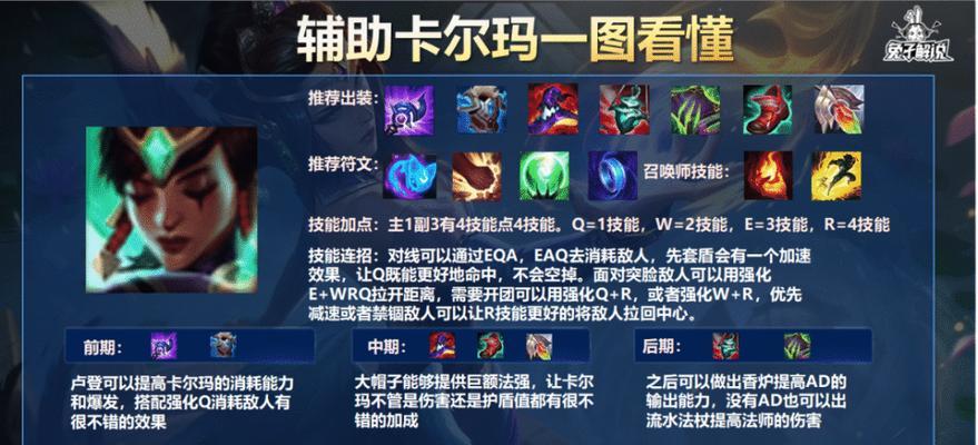 在手游比赛中,选择正确的出装对于卡尔玛这样的辅助英雄来说至关重要。本文将为大家分享一份详细的卡尔玛出装攻略,帮助您在比赛中发挥出最强的辅助作用,成为队伍的守护天使。