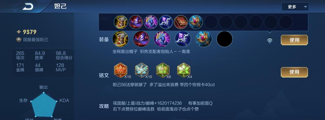 通过本文的介绍,相信玩家们对于妲己的出装和铭文攻略有了更深入的了解。只有熟知她的技能运用和合理选择装备,才能在战场上充分发挥妲己的魅惑力量,成为一名不可忽视的强力法师英雄。