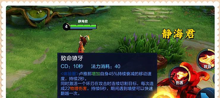 马超的二技能“飞刃落地”可以让他瞬间接近敌人,并造成范围伤害。搭配“无尽战刃”可以增加暴击伤害和暴击率,使马超的攻击更加致命。
