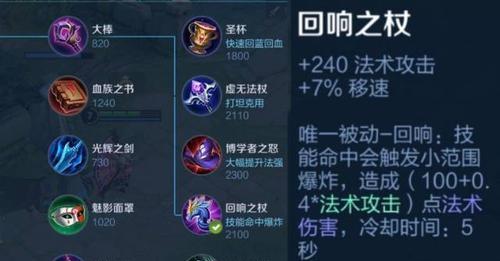 在游戏进入中期后,我们需要考虑提高小乔的输出能力。回响之杖是一款非常适合小乔的装备,它不仅能提高法术攻击力,还能给敌人造成额外的法术伤害。这让小乔的技能不仅可以治疗队友,还能对敌人造成毁灭性的打击。