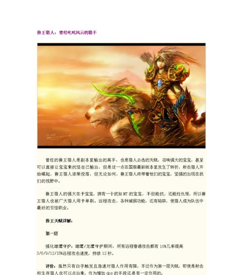 魔兽兽王作为魔兽世界中的强力英雄之一,在游戏中扮演着重要的角色。在不同版本的更新中,兽王的装备需求也在不断变化。本文将为大家介绍魔兽兽王最新的出装攻略,帮助各位玩家成为无敌的兽王!