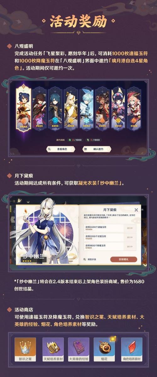 1.莫娜的信件:每一封信件都会带来一个奖励,包括原石、体力药水、经验书等等。