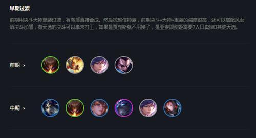 本段将针对游戏的不同阶段,分别介绍牌大师在前期、中期、后期应该选择的出装方案,并解释其原因。