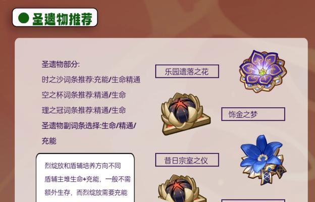 不同的圣遗物会给角色带来不同的属性加成和增益效果,选择合适的圣遗物可以大大提高角色的战斗力和生存能力。