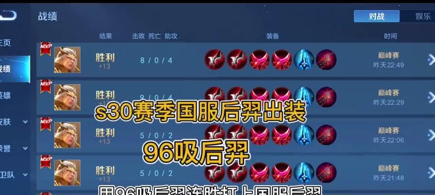 通过合理选择后羿的铭文出装,可以提高后羿在游戏中的表现,增加对敌人的威胁,并最终帮助你轻松登顶。希望本文的攻略能够对后羿玩家有所帮助,让你在游戏中取得更好的战绩!