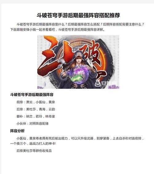 《斗破苍穹》手游是一款备受玩家热爱的动作角色扮演游戏,其中的师徒系统更是游戏中的重要亮点。通过师徒系统,玩家可以与其他玩家结为师徒,互相传授技能、提供资源和经验,一起成长并战胜强敌。本文将为大家分享一些关于斗破苍穹手游师徒系统的教学攻略,帮助玩家更好地利用师徒系统,打造强大的师徒团队。