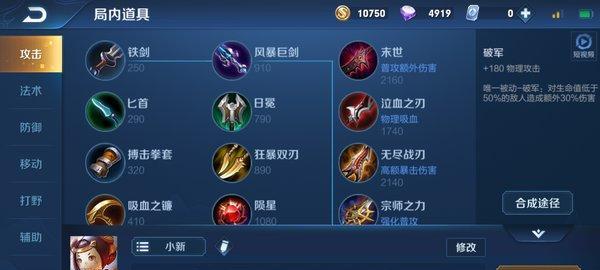 作为肉刀流鲁班出装的第二个关键装备,破军提供了高额的物理攻击和生命值加成。这使得鲁班能够在团战中更好地承受伤害,并增加自身的生存能力。破军的独特被动效果——爆破,还能对敌方目标造成额外伤害,提升鲁班的输出能力。