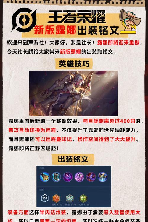露娜作为一名输出型战士,她的铭文和出装对于她的输出能力和生存能力有着至关重要的影响。在这篇文章中,我们将为大家详细介绍露娜的铭文和出装选择,并分享一些她的打法技巧。无论你是刚刚接触露娜还是已经是她的忠实玩家,本文都将为你带来有价值的信息。