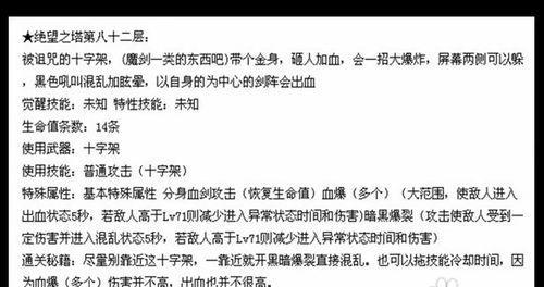 绝望之塔是一款风靡全球的挑战性游戏,玩家需要通过解谜和战斗来攀登高塔。然而,对于初次进入绝望之塔的玩家来说,可能会感到束手无策和绝望。本文将为大家分享一些攻略技能,帮助你在绝望之塔中取得更好的成绩。