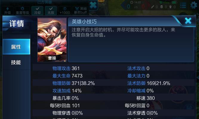 提供额外的物理攻击和法术防御,同时还能降低敌人的法术防御,使曹操能够更好地对抗法术型英雄。