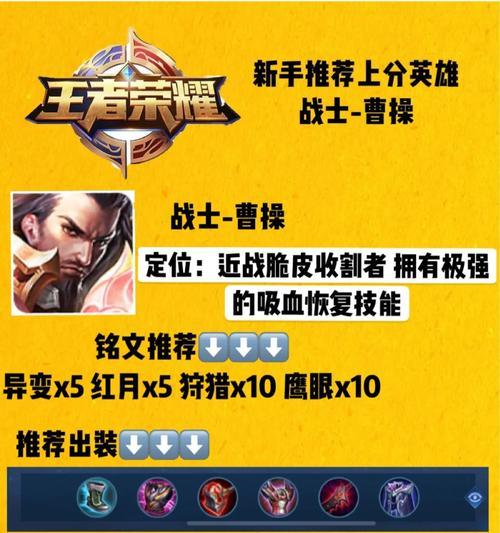 作为王者荣耀中的一位重要英雄,曹操在战场上展现出了强大的攻击力和生存能力。正确的出装选择可以大大提升曹操的战斗力,本文将详细介绍曹操的出装攻略,帮助玩家更好地驾驭这位英雄。