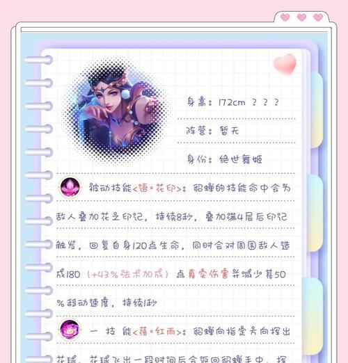 近期新版本更新,貂蝉作为一位高机动性和输出能力的法师英雄,再度成为热门选择。本文将为大家详细介绍新版本下最适合貂蝉的出装以及铭文选择,帮助玩家们在游戏中发挥出她最强的战斗力。