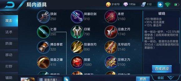 敌方防御装备是AD英雄输出能力的一个限制因素。物理穿透可以有效地突破敌方的防御。本段将讲解物理穿透装备的选择和使用技巧。