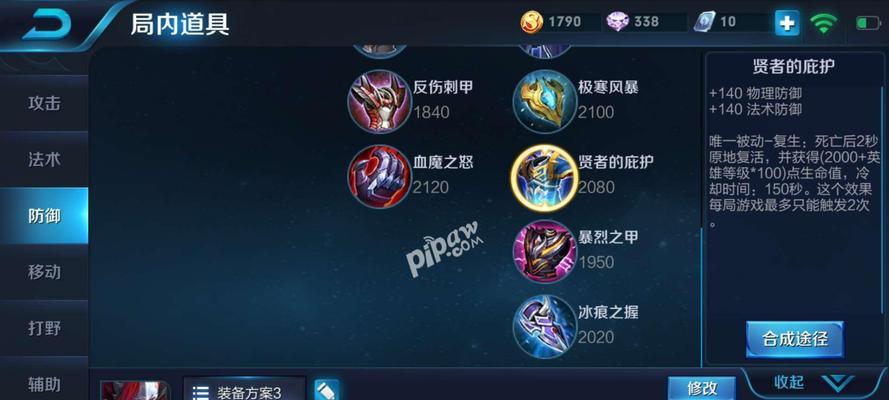 除了攻击装备外,为了提高生存能力,选择一些增加生命值和护甲的防御装备也非常重要。比如不祥征兆等,可以增加自己的生存能力。
