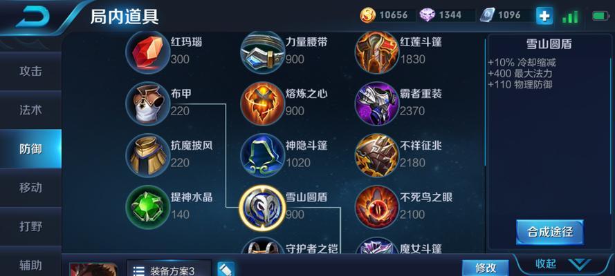 除了核心装备外,吕布还需要选择一些防御装备来增加自身的生存能力。推荐的防御装备包括不死鸟之眼、红莲斗篷和守护者之铠。这些装备可以增加吕布的生命值和抗性,提升他在战斗中的生存能力。