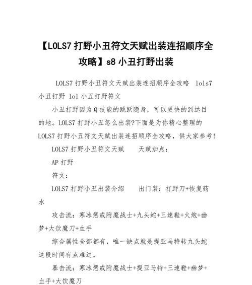 作为一名玩家,想要在游戏中发挥小丑的最大潜力,合理的装备选择是至关重要的。本文将为您提供全面的小丑黑暗出装顺序攻略,帮助您在游戏中成为黑暗中的主宰!