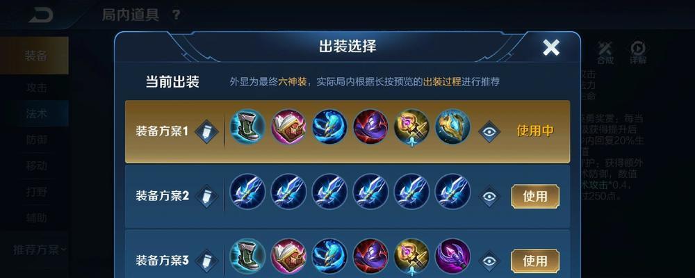 不同的游戏阶段对出装的要求也不同。在游戏初期,我们可以选择一些经济实惠、提供基础属性加成的装备,而在后期则需要选择一些更加高级、提供更强大增益效果的装备。