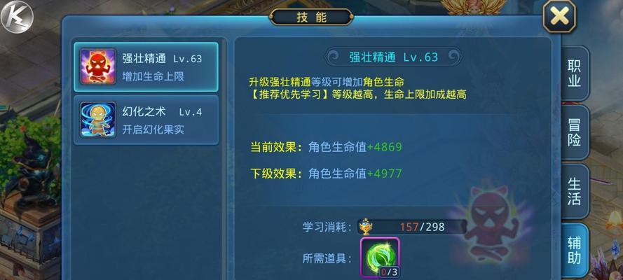 在使用技能时,熟练度是决定技能效果的重要因素之一。提高技能熟练度可以让你的角色更加熟练地施展技能,并增加技能的伤害和效果。建议在游戏中经常使用主要技能,提高其熟练度,以持续提升角色的战斗能力。