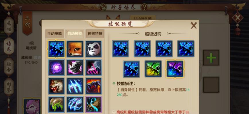 除了技能效果本身,技能培养还能提升珍兽的属性,我们应该善于利用技能培养来提升珍兽的整体实力。