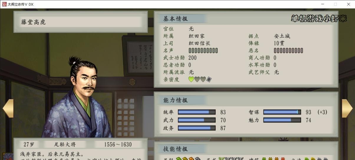 -山中鹿介的成长需要玩家有针对性地提升他的属性和技能。