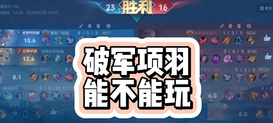 《王者荣耀》中的破军项羽是一个极具爆发力和持续输出能力的战士英雄,在征战沙场中可以起到决定性的作用。然而,要想让项羽的实力发挥到极致,合适的出装选择至关重要。本文将为大家详细介绍破军项羽的出装攻略顺序,帮助大家在游戏中取得更多的优势。