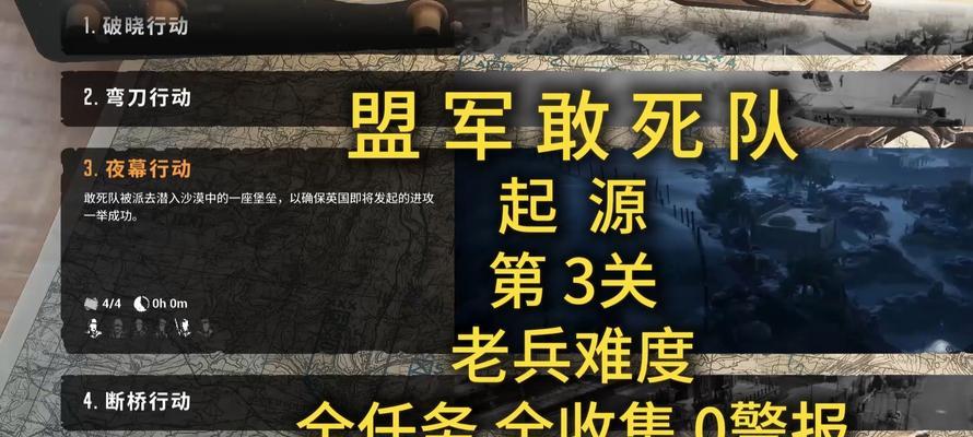 作为一款备受期待的第三人称射击游戏,《以盟军敢死队3》继承了前作的精髓,融入了更多创新元素,给玩家带来了更加丰富和刺激的游戏体验。本文将为广大玩家提供一些攻略技巧和策略,帮助他们在战场上取得更好的成绩。