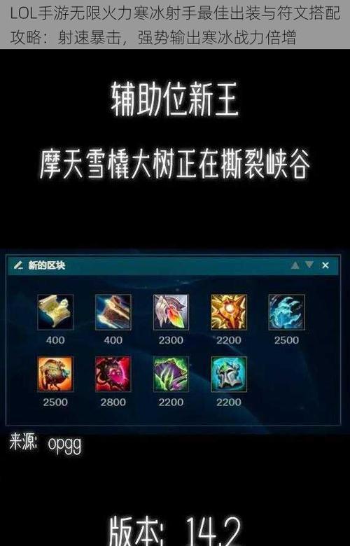 在比赛的后期,射手需要选择适合自己的终极装备,以发挥最强大的输出能力。选择具有高额伤害和攻击速度加成的装备,可以让射手成为比赛的终结者。