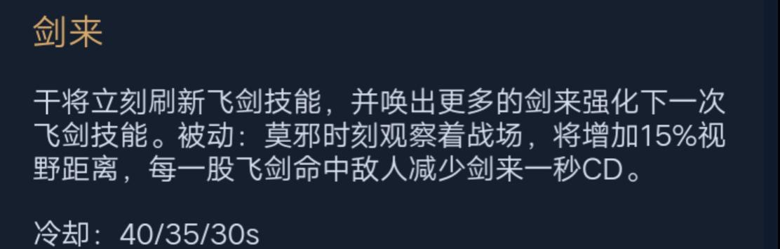 干将莫邪凭借其强大的爆发能力和灵活的机动性,在游戏中可以成为一名致命的刺客。通过合理的铭文选择、出装策略和技巧运用,可以让干将莫邪发挥出更加出众的实力。希望本文提供的攻略能够帮助到广大玩家,享受到更多的游戏乐趣。