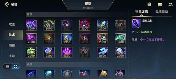游戏中有各种各样的装备,每个装备都有自己的特性和效果。熟悉不同装备的特性与效果可以帮助我们更好地选择出装,并充分发挥装备的优势。