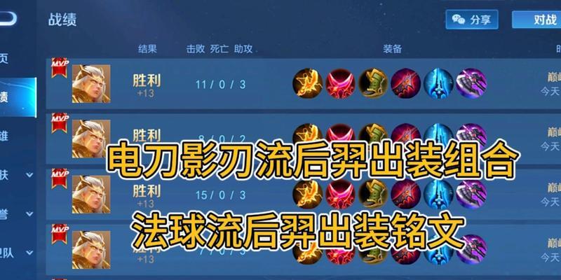 10.必备的生存能力提升装备:在面对敌方高爆发英雄时,我们需要选择一些提升生存能力的装备,以增加后羿在团战中的生存能力。