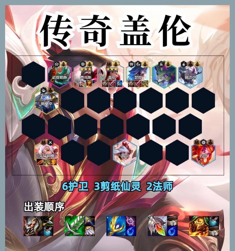作为一名坦克英雄,盖伦需要与团队密切配合才能发挥出最大的作用。在这种情况下,选择一件能够帮助团队的装备是非常重要的。我们推荐选择“救赎之翼”。这件装备可以为盖伦和他的队友提供额外的生命值回复和法力值回复。