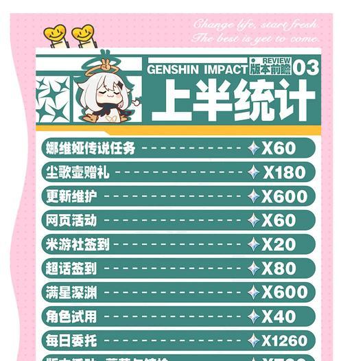 在本章中,我们将详细介绍3.3版本的新特性,包括原石掉落途径增加、活动奖励优化等内容,为攒原石奠定基础。