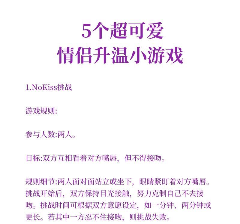 十五、通过情侣游戏手机任务攻略,我们不仅可以增进感情、提高默契,还能够共同享受游戏乐趣,创造出属于我们自己的甜蜜回忆。让我们赶快动起手指,在手机游戏中留下美好的足迹吧!