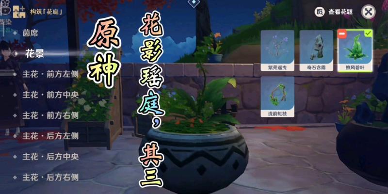 在《原神》这个开放世界中,拥有一个美丽的花庭不仅可以为你的角色提供重要的资源,还能为整个游戏增添一份生机与美感。本文将为大家带来一系列关于构筑花庭的攻略,教你如何打造一个令人惊艳的花庭,以及如何充分利用花庭获得丰富的游戏收益。