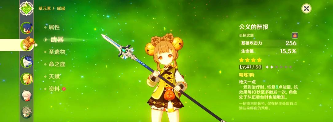 在装备选择上,瑶适合选择攻击力和元素伤害加成较高的武器和圣遗物。同时,建议提升她的元素精通和攻击力,以提高她的输出能力。此外,还可以利用食材合成食物来增加瑶的属性,提升她在战斗中的生存能力。