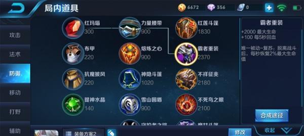 4.出装攻略二:防御能力强化装备的选择和使用