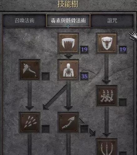 高级技能是死灵法师输出能力的关键所在,也是玩家们需要重点关注的部分。在选择高级技能时,玩家们需要结合自己的战斗风格和游戏需求进行选择。通常情况下,建议选择“毒素爆发”、“恶灵掌控”和“骨矛”等技能。